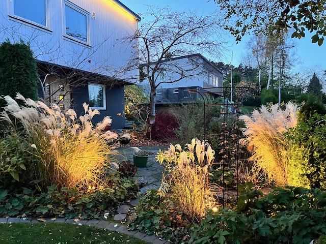 Stabila prydnadsgräs är fantastiska i vinterträdgården. De står stabila i vinden, ger rörelse och skapar magi med lätt belysning av marknära spots.